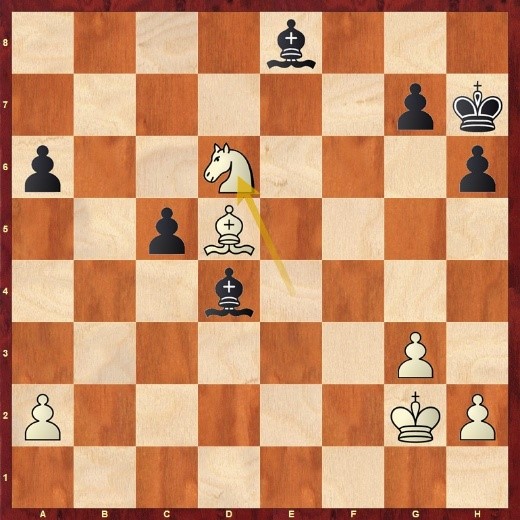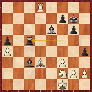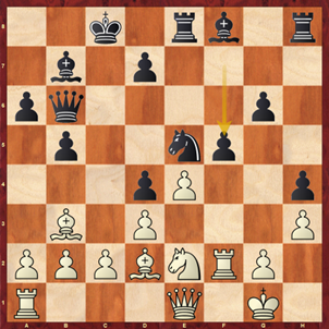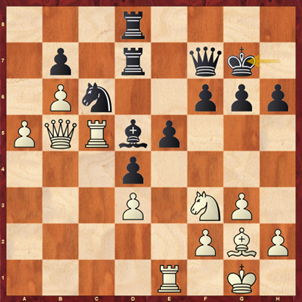 Nach 29.a6! bxa6 30.Dxa6 sieht ihn die Engine deutlich im Vorteil. Es folgte aber 29.Sd2 Lxg2 30.Kxg2.Sb8 31.Se4 Sa6 32.Txe5!? und die Partie endete wenig später mit Dauerschach.
