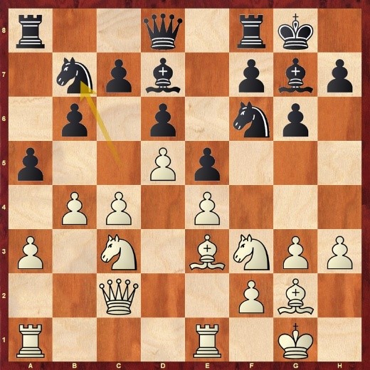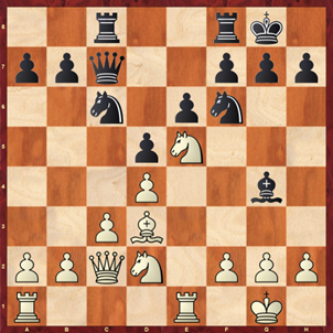 Es folgte 19.a5 (Stockfish empfiehlt b3 mit deutlichem weißen Vorteil) Sd7 20.Tc4? (nach 20.b6 Dxa5 21.Lc4 hat Weiß immer noch etwas Vorteil) Dxa5 21.Ta4 Db6 22.Sc4 Dc7 23.Sd2 axb5 und hier stand Schwarz schon besser, gewann bald einen Bauern und dann die Partie.